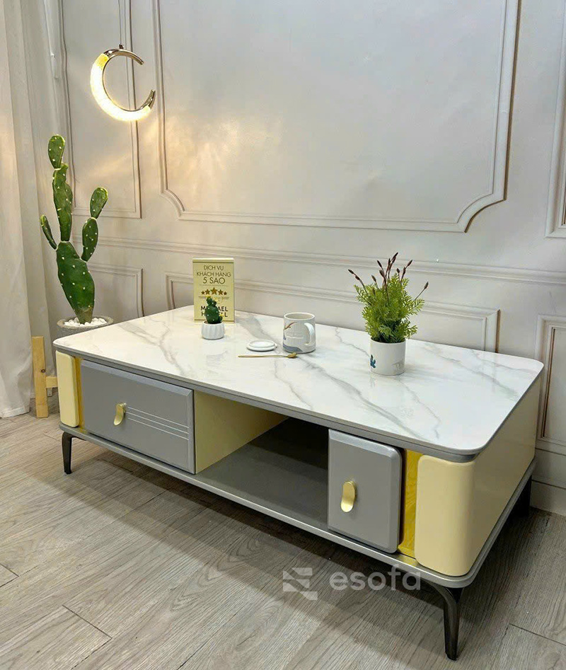 Bàn trà mặt đá trắng cao cấp chống trầy xước và chịu nhiệt EBC40