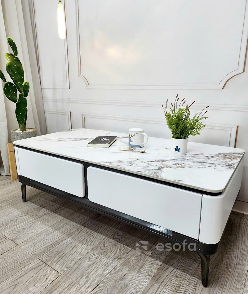 Bàn trà tông màu trắng tinh khôi cho không gian phòng khách sáng EBC35