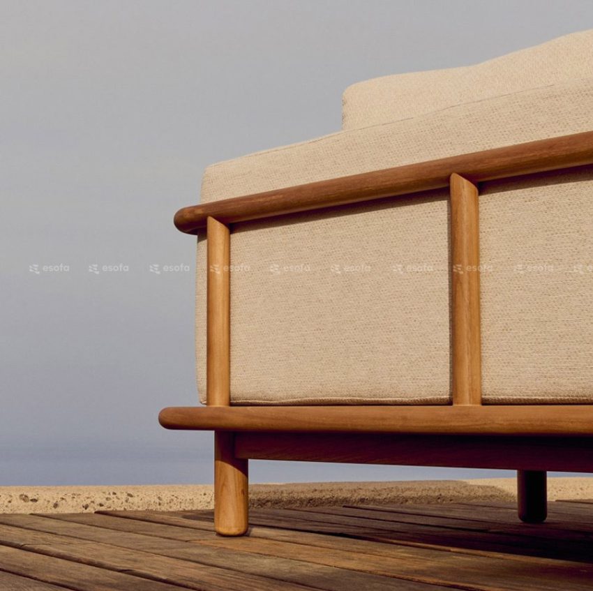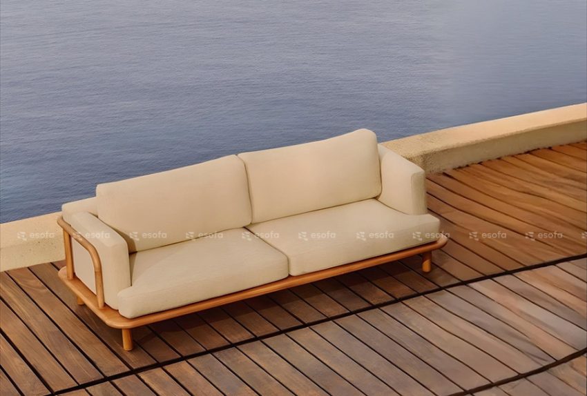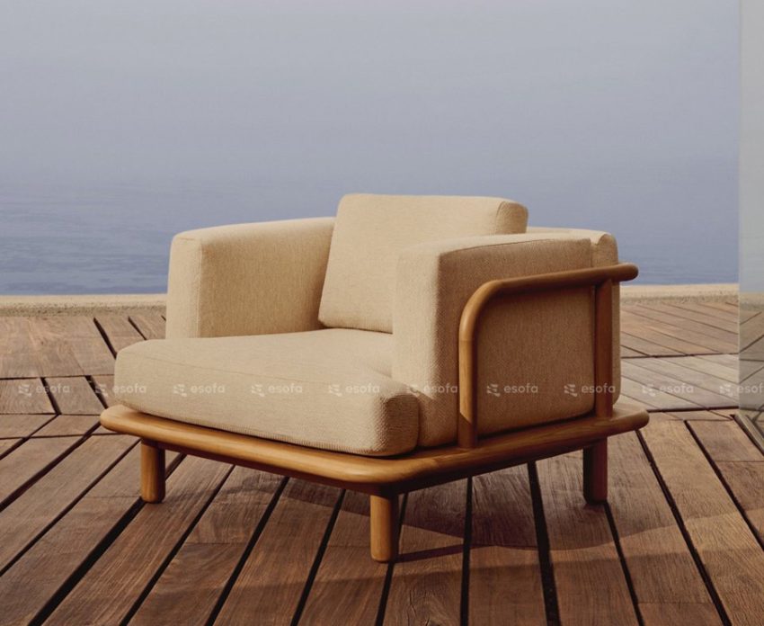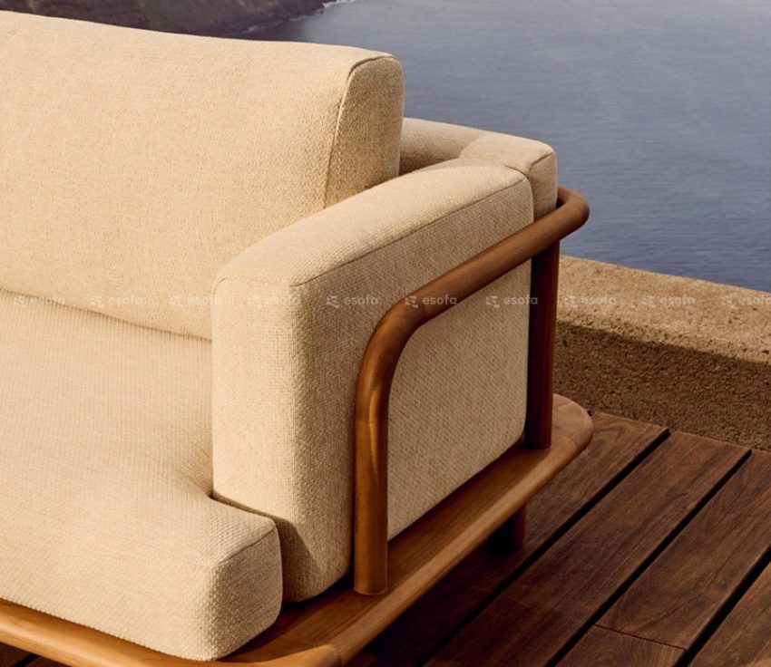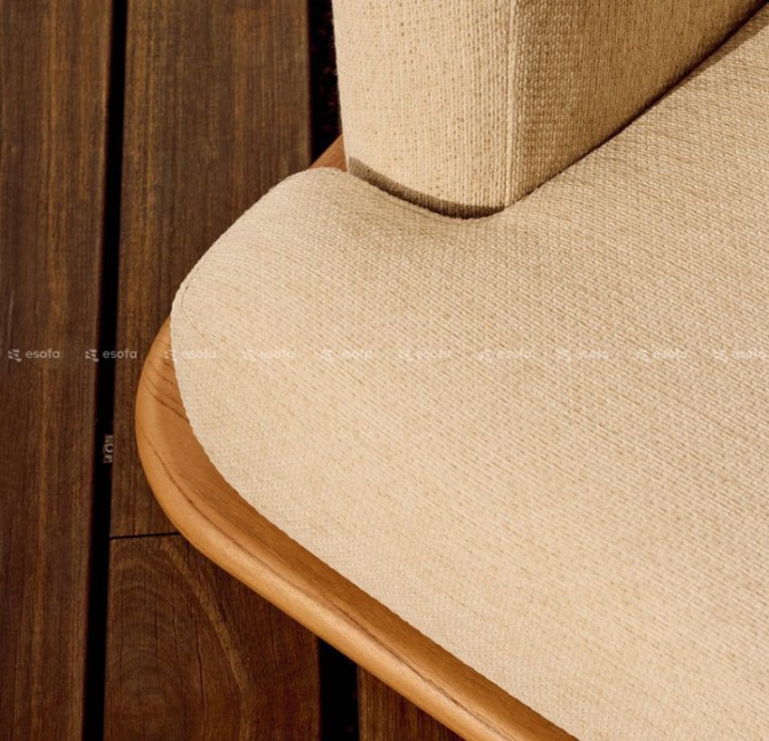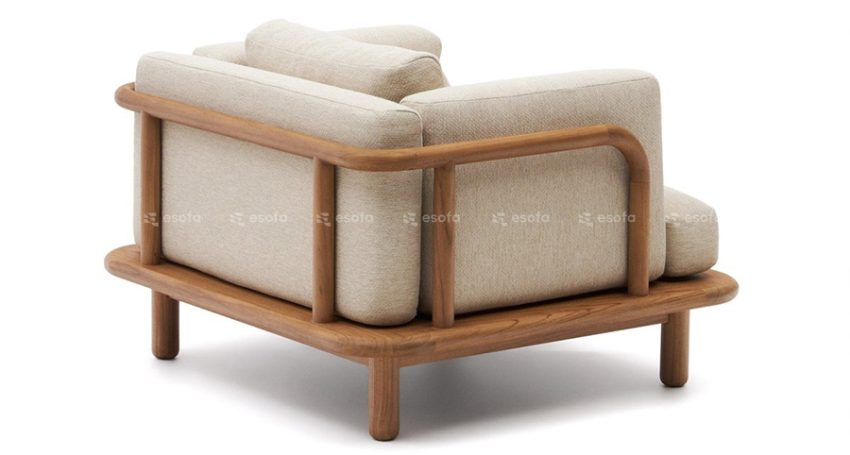 Từ tay ghế bo tròn, khung gỗ liền mạch, đệm nỉ trắng phẳng phiu cho đến dáng ghế thấp rộng – tất cả hòa lại thành một bản giao hưởng của sự giản dị và sang trọng.
