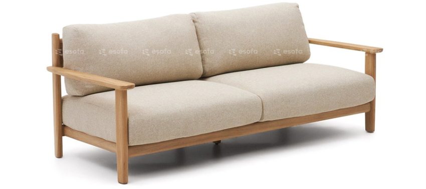 Tổng thể chiếc sofa mang dáng vẻ vững chãi mà nhẹ nhàng, với tông màu trắng kem tinh khôi kết hợp cùng khung gỗ nâu ấm, tạo nên hiệu ứng thị giác dịu dàng, sang trọng và dễ hòa nhập trong mọi không gian sống.