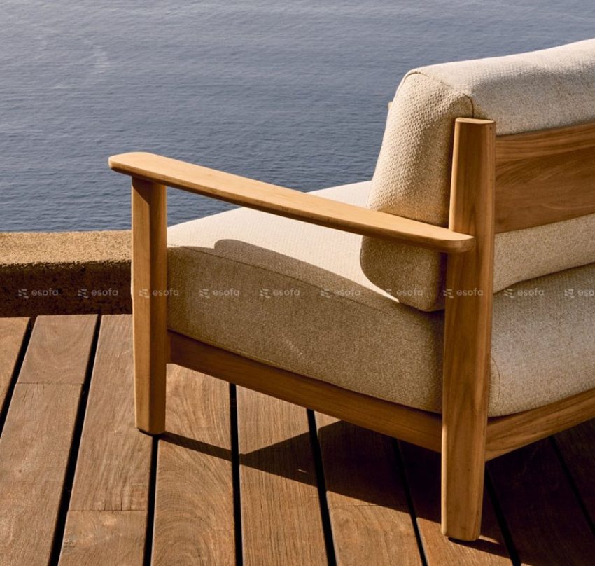 Chi tiết này vừa là điểm nhấn trang trí, vừa giúp tay ghế nhẹ hơn, tạo cảm giác thoáng đãng thay vì khối hộp nặng nề.
