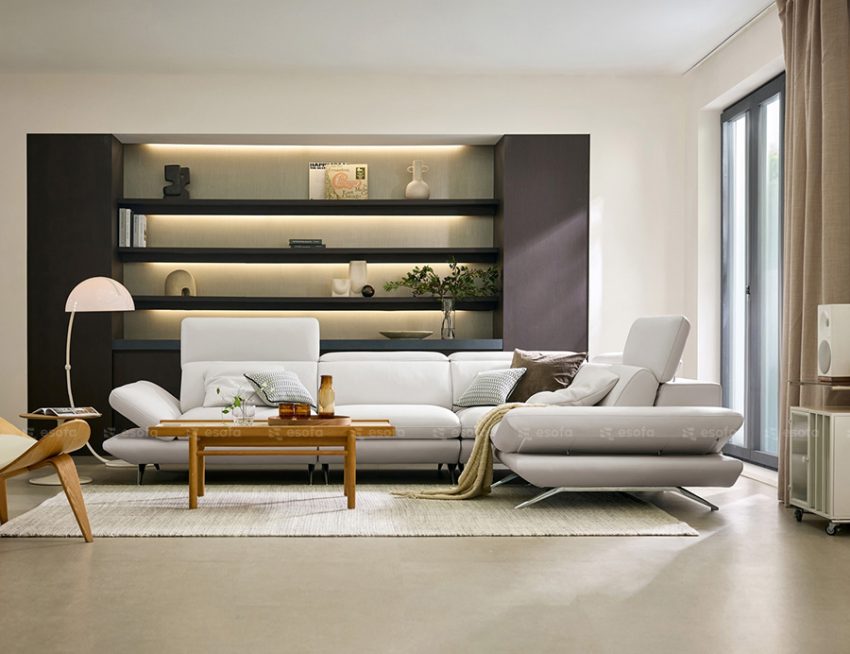 Tích hợp bàn gỗ: Điểm đặc biệt của sofa góc E66 là phần kệ gỗ được tích hợp ở một bên, mang lại sự tiện lợi khi sử dụng. Bạn có thể đặt sách, tạp chí, ly nước hay những món đồ trang trí nhỏ xinh, giúp không gian sống trở nên gọn gàng và tiện nghi hơn.