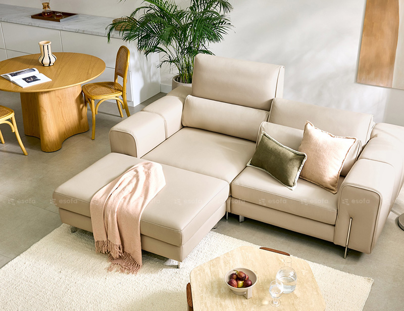 Bên cạnh đó, tông kem trung tính giúp sofa E50 dễ dàng kết hợp với mọi loại nội thất: từ bàn trà gỗ sáng, đèn sàn kim loại, đến cây xanh nội thất.