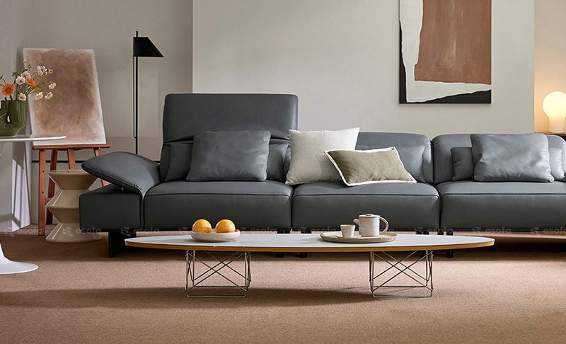 Từng lớp da ôm sát khung ghế, được gia công thủ công bằng những đường may sắc nét, giúp bề mặt sofa trở nên mượt mà, liền lạc.