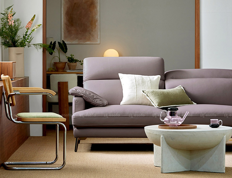 Sofa Văng Da Tay Nhỏ Tựa Gật Gù – E46 là đại diện tiêu biểu cho triết lý “simple luxury” – đơn giản nhưng sang trọng, mang đến cảm giác thư thái và thanh lịch cho mọi không gian. Với thiết kế dáng văng gọn gàng, ba chỗ ngồi cân đối và gam màu nâu nhạt ánh tím thời thượng, E46 không chỉ là món nội thất mà còn là tuyên ngôn phong cách sống tinh tế của gia chủ.