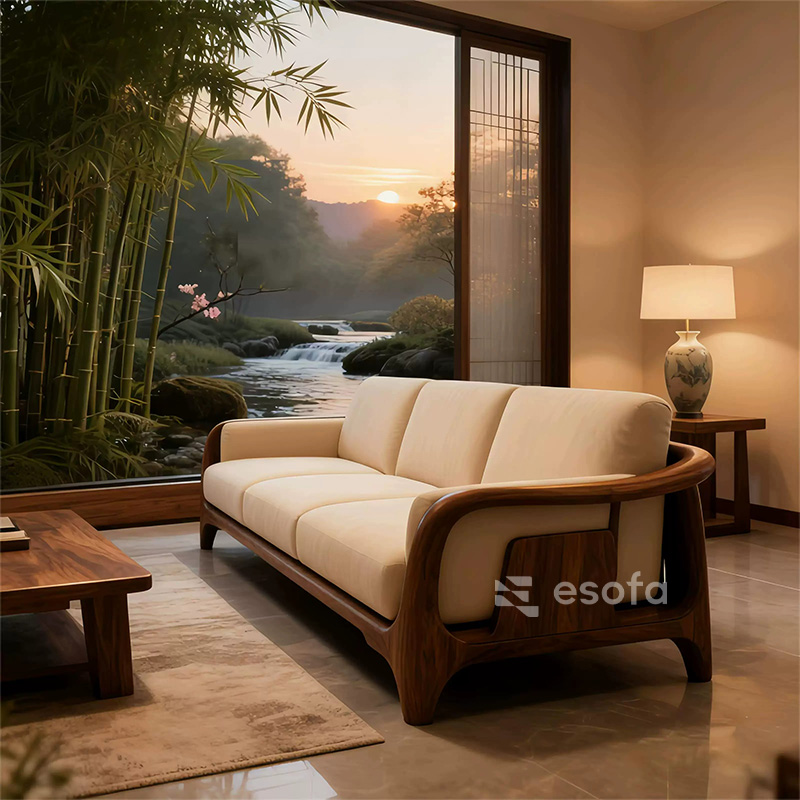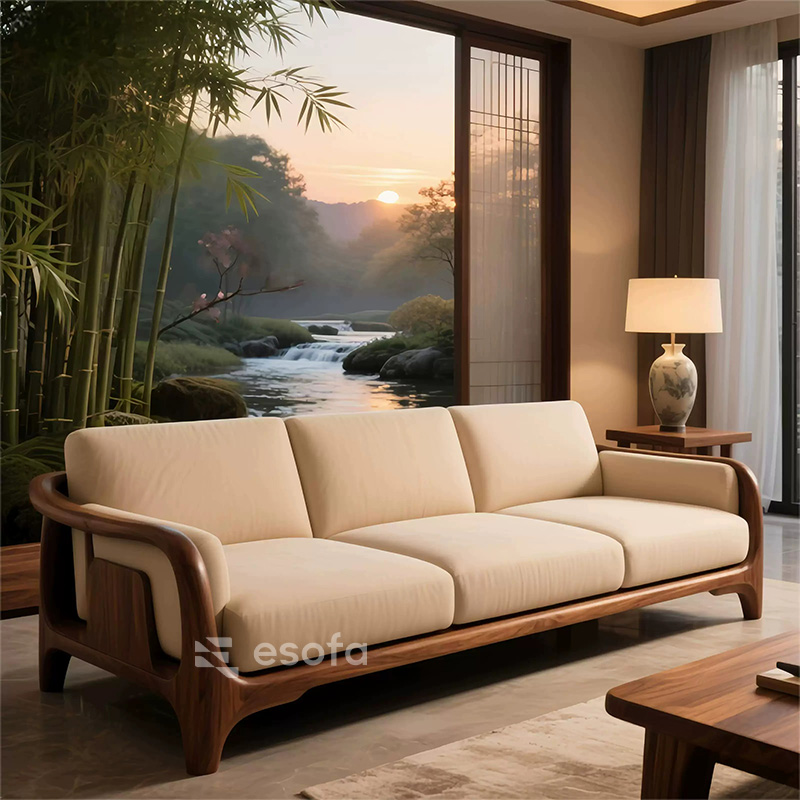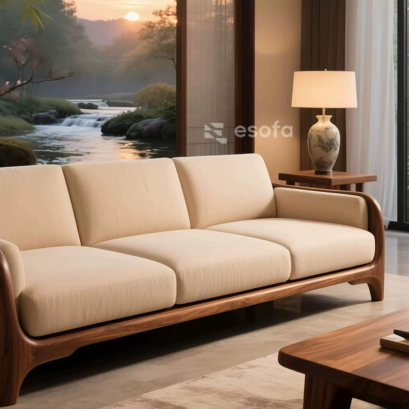 Sofa văng nệm vải màu kem thanh lịch EH20