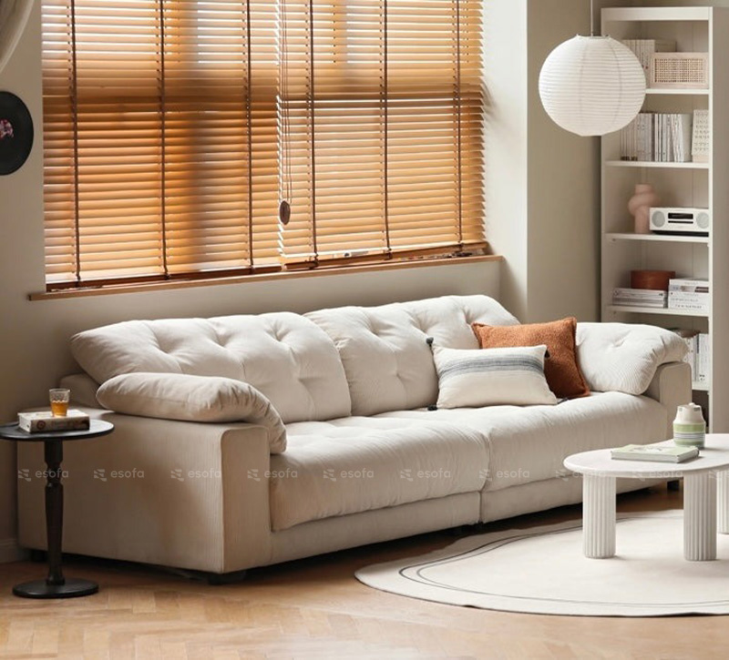 Đệm có độ phồng tự nhiên, giúp sofa trông luôn đầy đặn và mềm mại, như một lời mời gọi ngồi xuống thư giãn.